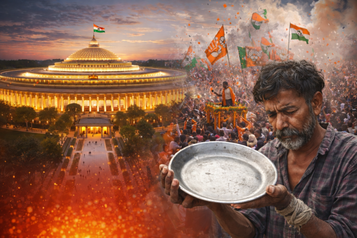 लेकिन जब वही इंसान शाम को घर लौटकर टीवी चलाता है, तो उसका कलेजा मुँह को आता है। वह देखता है कि जिस देश में आज भी इलाज के अभाव में लोग दम तोड़ देते हैं और छोटे उद्योग फंड की कमी से दम तोड़ रहे हैं, वहां ₹20,000 करोड़ की लागत से एक आलीशान, चमकती हुई नई संसद खड़ी कर दी गई। क्या ईंट-पत्थरों की यह भव्यता उस व्यापारी की मशीनें दोबारा शुरू कर पाएगी जो कर्ज और टैक्स के बोझ तले थम गई हैं?